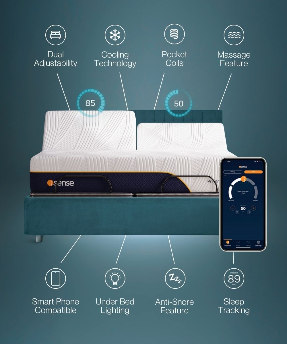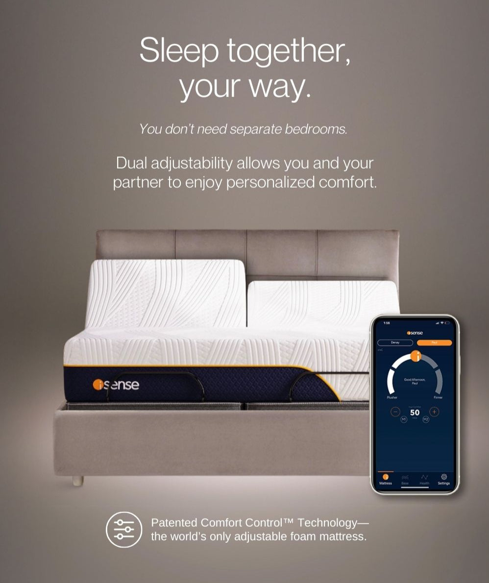 Integrated iSense app puts you in control of your bed and adjustable base.
