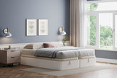Maximice su espacio sin renunciar al estilo. La base de cama otomana Vincent cuenta con un suave mecanismo de elevación a gas que deja al descubierto un espacio de almacenamiento oculto bajo la cama, perfecto para mantener tu dormitorio despejado.
