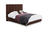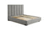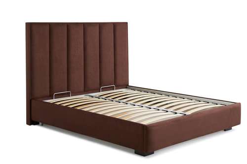 Los ajustes profundos y rectos crean un diseño noble. La espalda está decorada con botones dorados. Tanto el respaldo como las paredes laterales de la cama poseen volumen. El patrón de la cabecera se compone de piezas enmarcadas, en lugar de solo ajustes. Las piezas de soporte están cubiertas con tiras decorativas de madera. La pared frontal de la cama repite el patrón volumétrico de la cabecera y sobresale ligeramente.