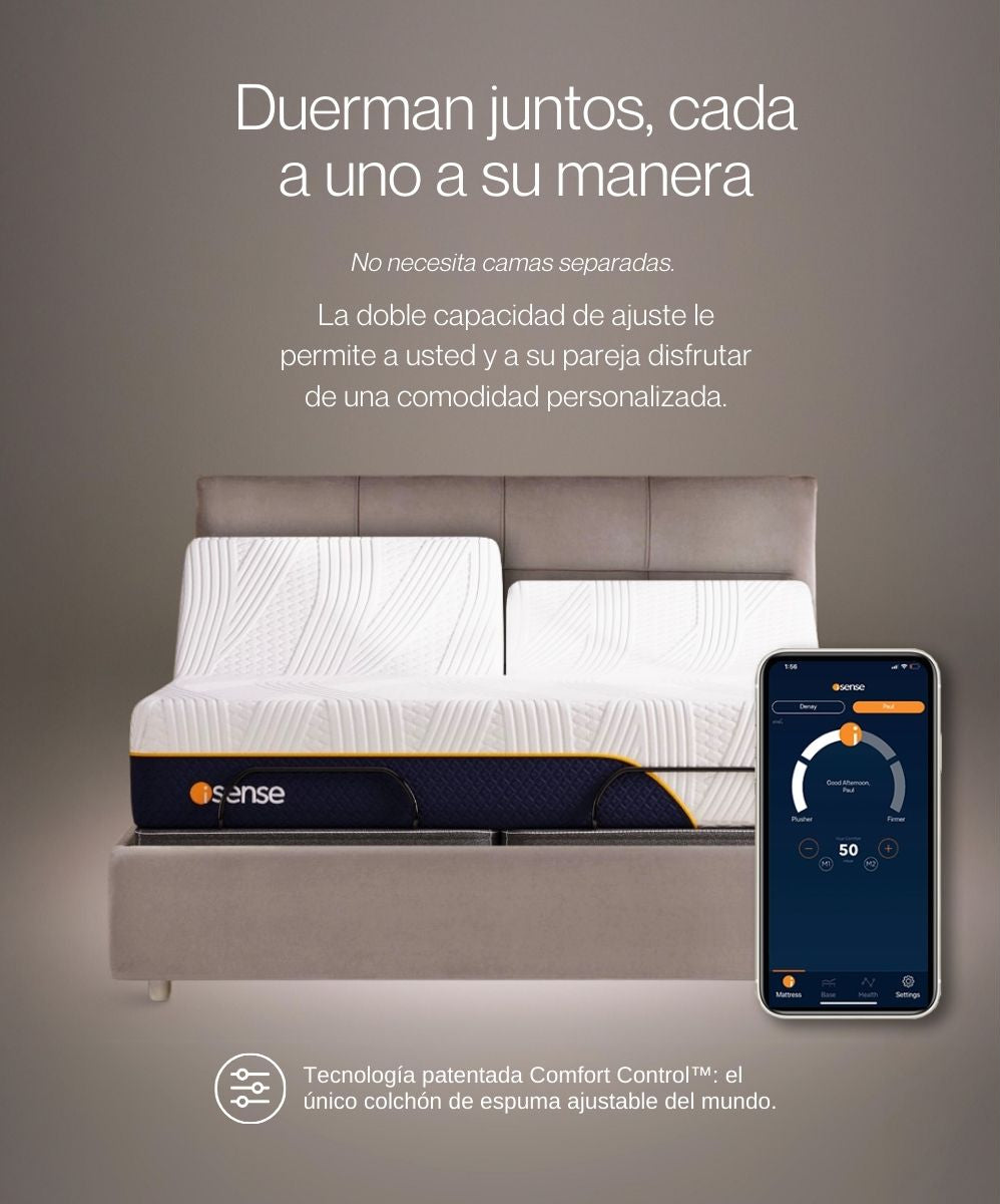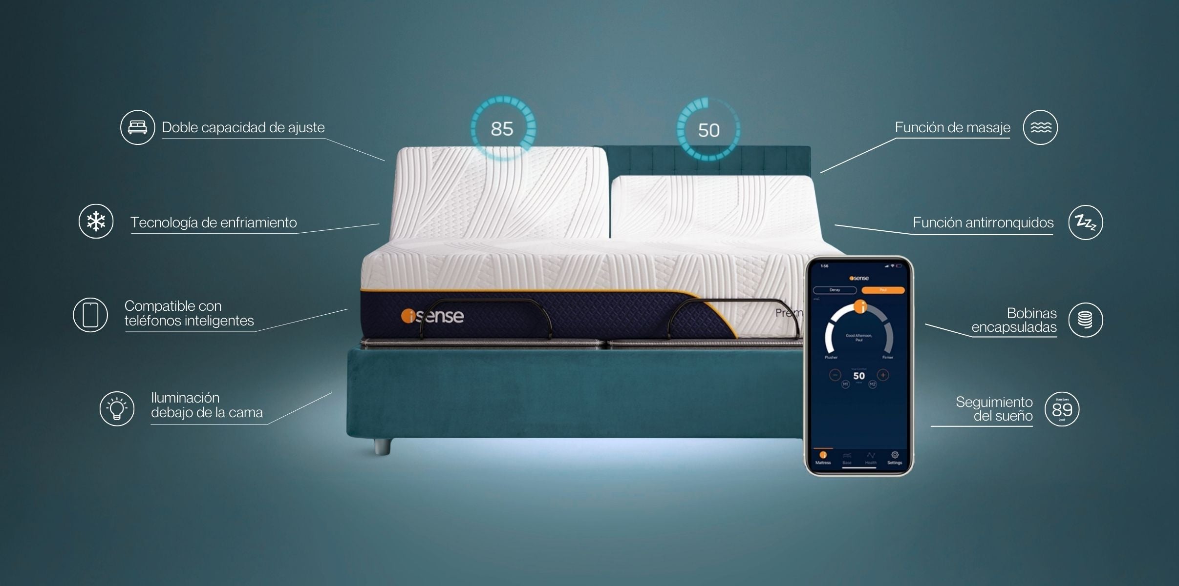 La aplicación iSense integrada te da el control de su cama y base de cama ajustable.