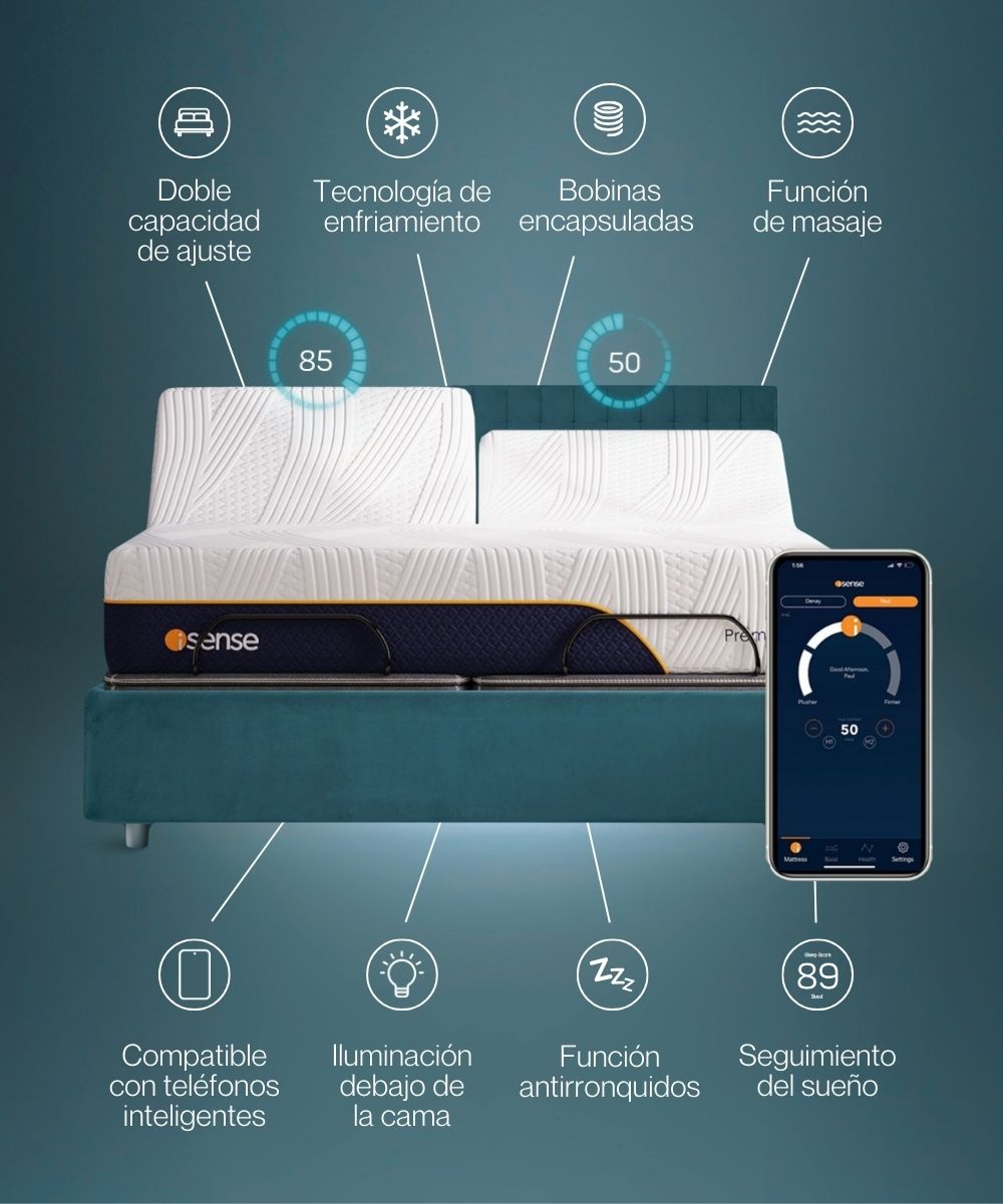 La única cama que provee la comodidad y la estabilidad de un colchón tradicional con las ventajas del ajuste por ambos lados, la tecnología de refrigeracion y el seguimiento del sueño en tiempo real.