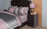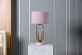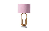 Un modelo compacto y elegante decorará la mesita de noche, dejando espacio para otros elementos necesarios antes de acostarse. Una pantalla de tela rosa atenúa suavemente la luz, lo que la hace cómoda para leer o mirar televisión. Una base de mármol estable le permite no preocuparse de que la lámpara se vuelque.
