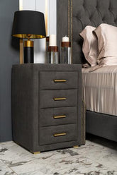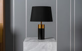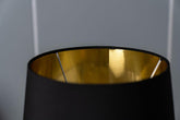 La lámpara Louie con pantalla de tela será un complemento armonioso para el interior moderno de un dormitorio. El modelo está realizado con un espíritu minimalista, caracterizado por la simplicidad de las formas y. La pantalla tiene forma de cono truncado con la parte superior abierta. La tela negra dispersa suavemente la luz, haciendo que el espacio sea cálido y acogedor de forma hogareña.